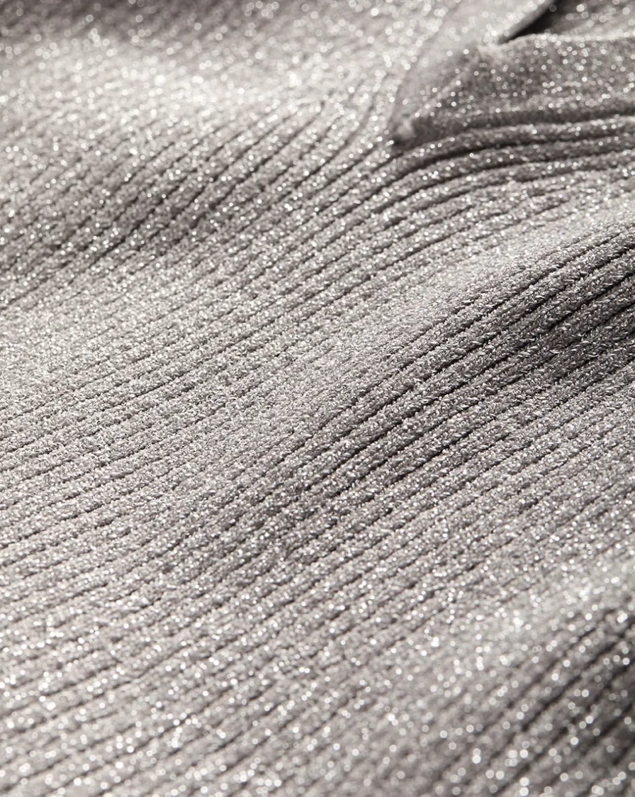 The lightweight shell is made from a soft stretch knit and features an allover ribbed design.
