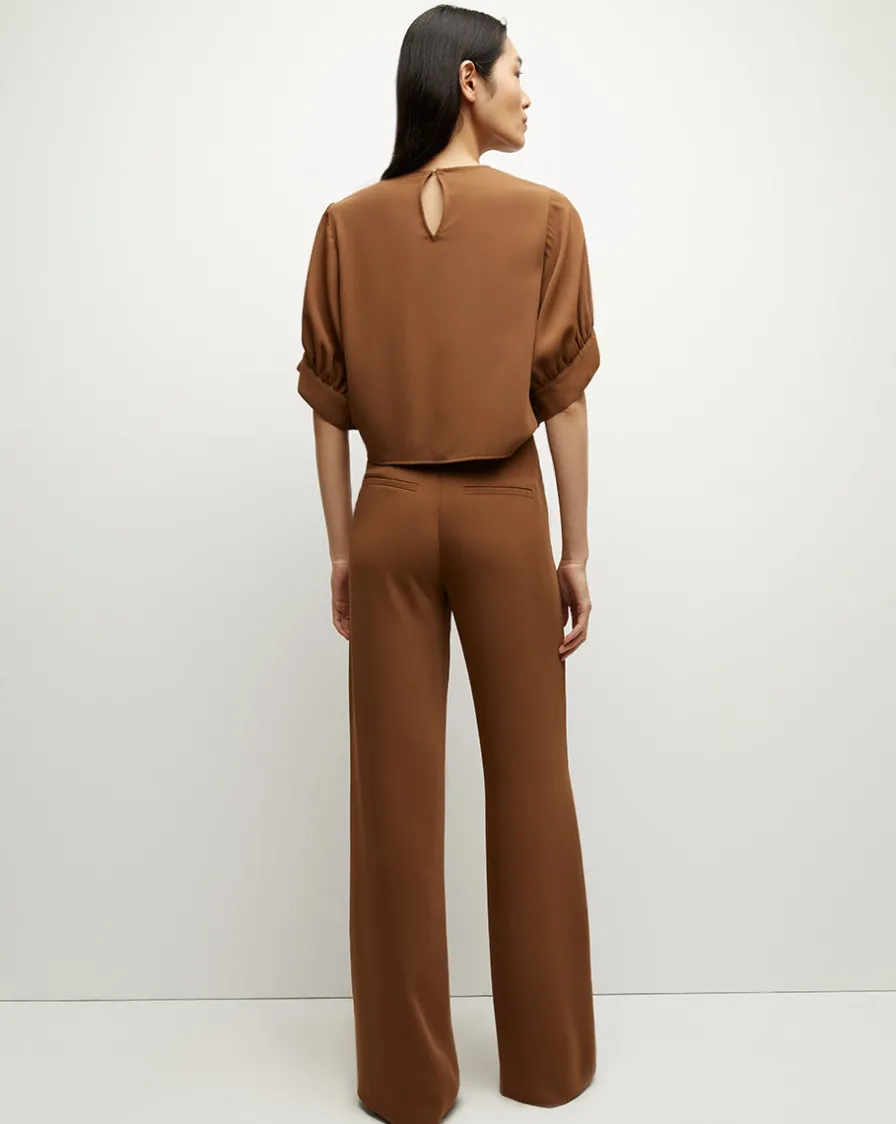 Veronica Beard Tops>Margaret Matte Crepe Top in Deep Ochre