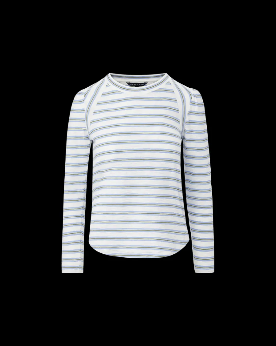 Our striped Mason tee features puffed shoulders and a relaxed fit.