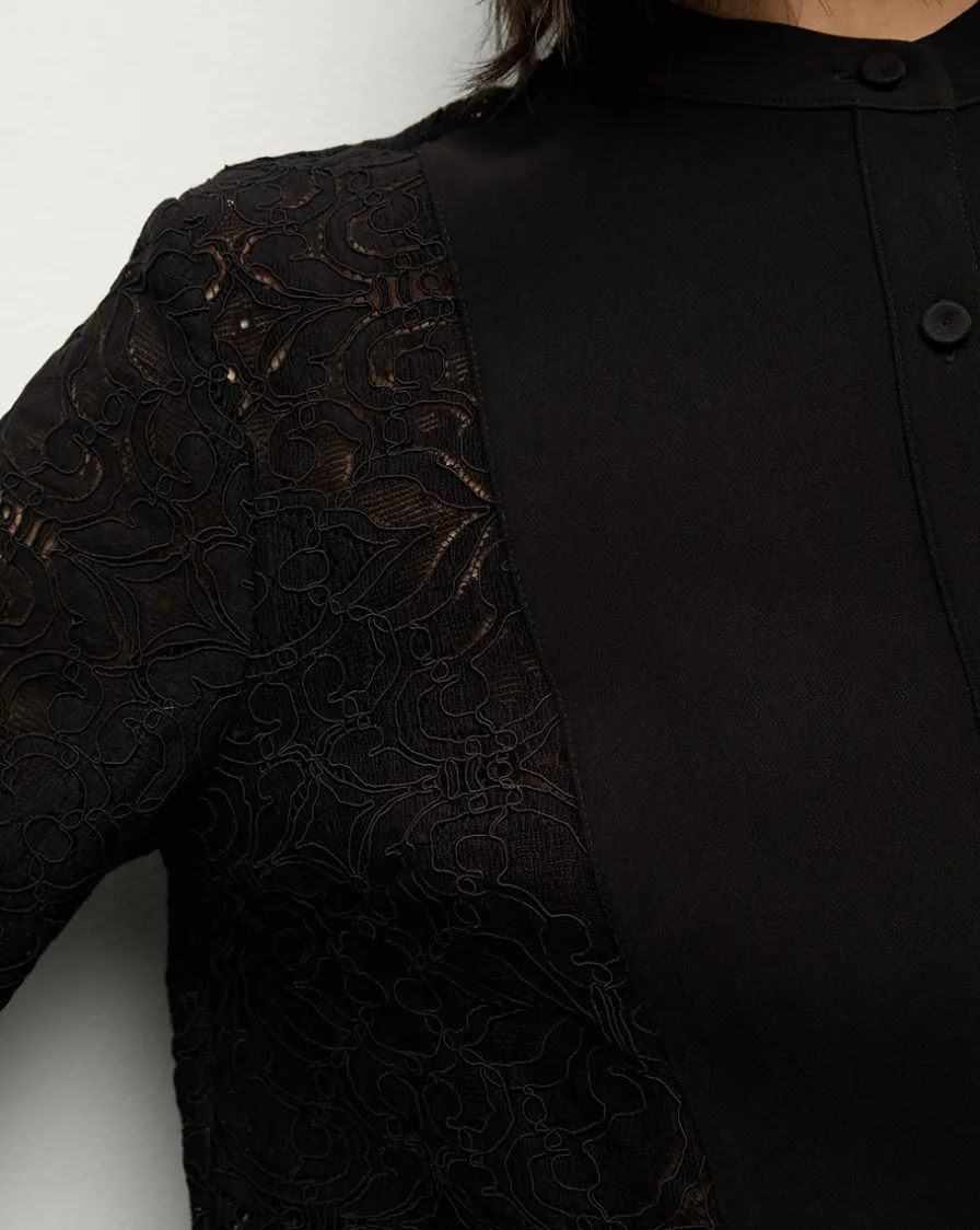 Expertly tailored from stretch cotton, the Naya features a bib front set into an intricate lace body.