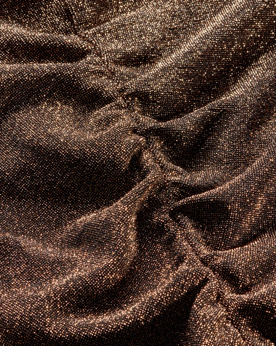 The Neeta top is defined by a slim fit, center ruching and metallic gold color.