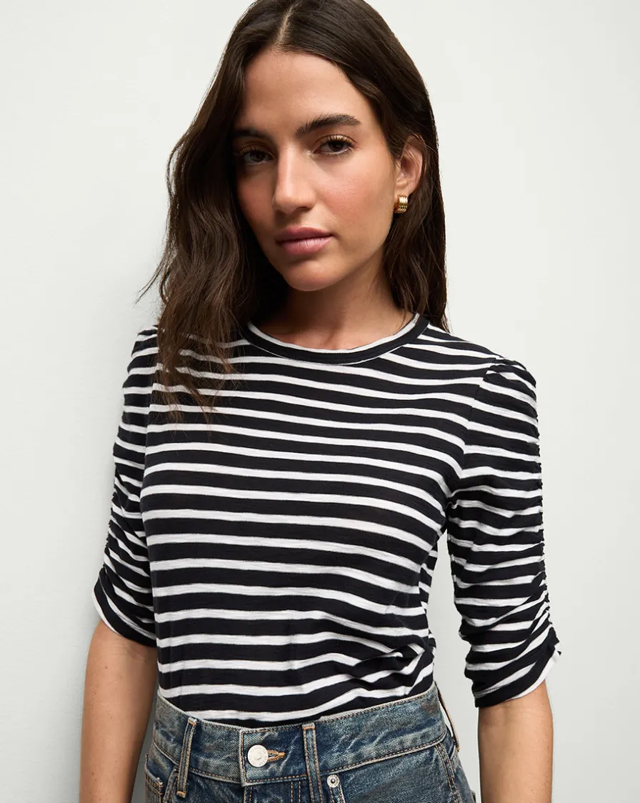 Made from 100% cotton, the striped Waldorf tee features elbow-length sleeves with ruched detailing.